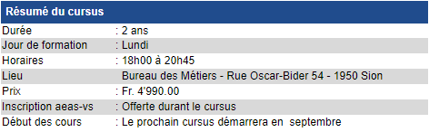L'objectif principal du cursus est d'amener le candidat à réussir les examens organisés par la Fédération des Employés d'Assurances Sociales (FEAS) et qu'il puisse porter le titre protégé par l'OFFT de :